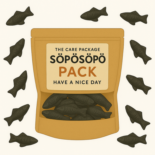 SÖPÖSÖPÖ Scandinavian Treat Pack – Cloetta Suolasillit Salty Licorice Fish Gummies – 150g SÖPÖSÖPÖ Pack
